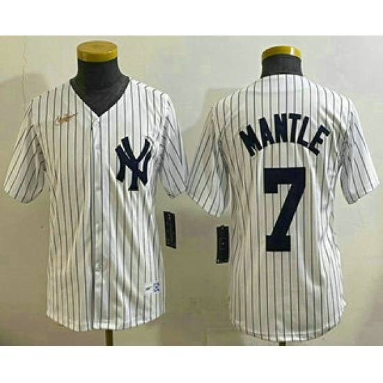 >Youth New York Yankees #7 Mickey Mantle White Throwback Stitched Cool Base Nike Jersey