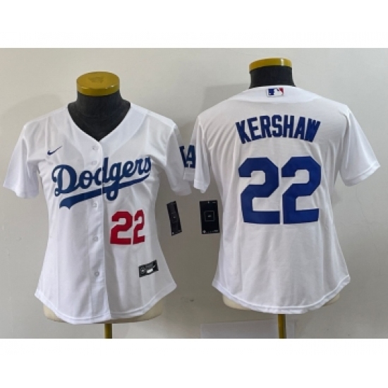 Youth Nike Los Angeles Dodgers #22 Clayton Kershaw Number White Stitched MLB Cool Base Nike Jersey