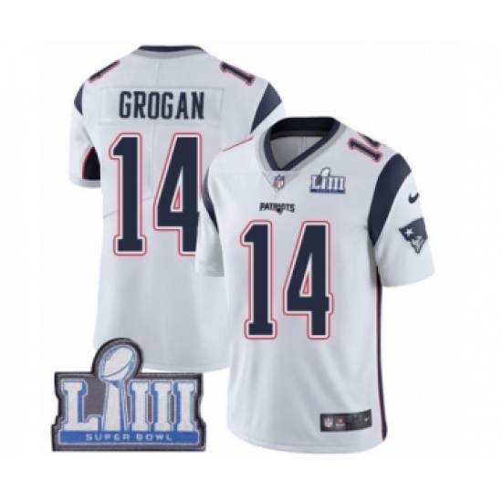 Youth Nike New England Patriots #14 Steve Grogan White Vapor Untouchable Limited Player Super Bowl LIII Bound NFL Jersey