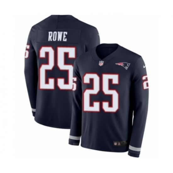 >Youth Nike New England Patriots #25 Eric Rowe Limited Navy Blue Therma Long Sleeve NFL Jersey