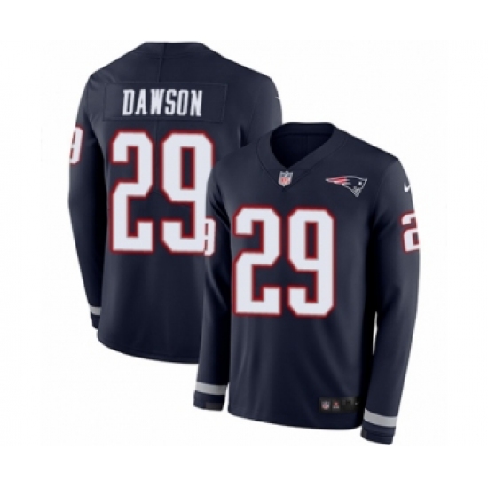 >Youth Nike New England Patriots #29 Duke Dawson Limited Navy Blue Therma Long Sleeve NFL Jersey