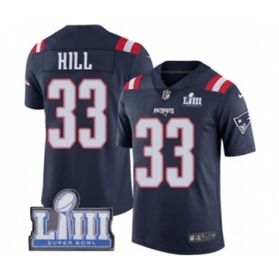 >Youth Nike New England Patriots #33 Jeremy Hill Limited Navy Blue Rush Vapor Untouchable Super Bowl LIII Bound NFL Jersey