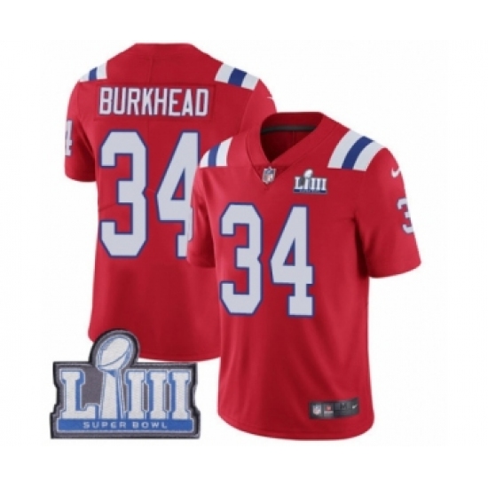 >Youth Nike New England Patriots #34 Rex Burkhead Red Alternate Vapor Untouchable Limited Player Super Bowl LIII Bound NFL Jersey