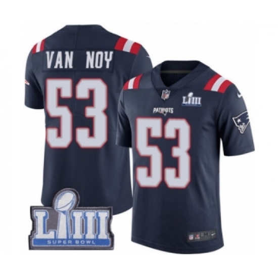 >Youth Nike New England Patriots #53 Kyle Van Noy Limited Navy Blue Rush Vapor Untouchable Super Bowl LIII Bound NFL Jersey