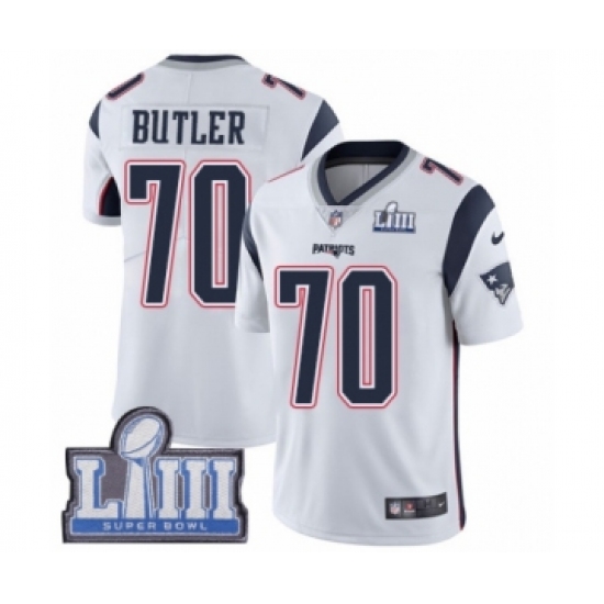 Youth Nike New England Patriots #70 Adam Butler White Vapor Untouchable Limited Player Super Bowl LIII Bound NFL Jersey