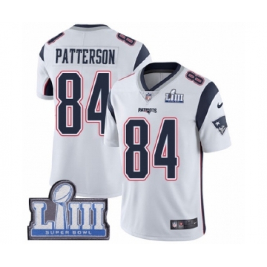 Youth Nike New England Patriots #84 Cordarrelle Patterson White Vapor Untouchable Limited Player Super Bowl LIII Bound NFL Jersey