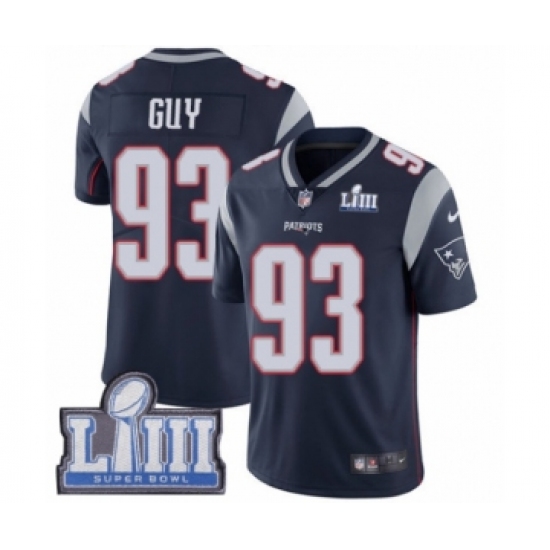 Youth Nike New England Patriots #93 Lawrence Guy Navy Blue Team Color Vapor Untouchable Limited Player Super Bowl LIII Bound NFL Jersey