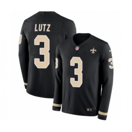 >Youth Nike New Orleans Saints #3 Wil Lutz Limited Black Therma Long Sleeve NFL Jersey