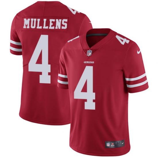 >Youth Nike San Francisco 49ers #4 Nick Mullens Red Team Color Vapor Untouchable Limited Player NFL Jersey