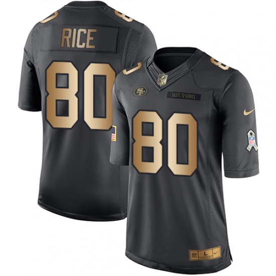 Home>NFL>San Francisco 49ers>Jerry Rice>Youth Nike San Francisco 49ers #80 Jerry Rice Limited Black/Gold Salute to Service NFL Jersey