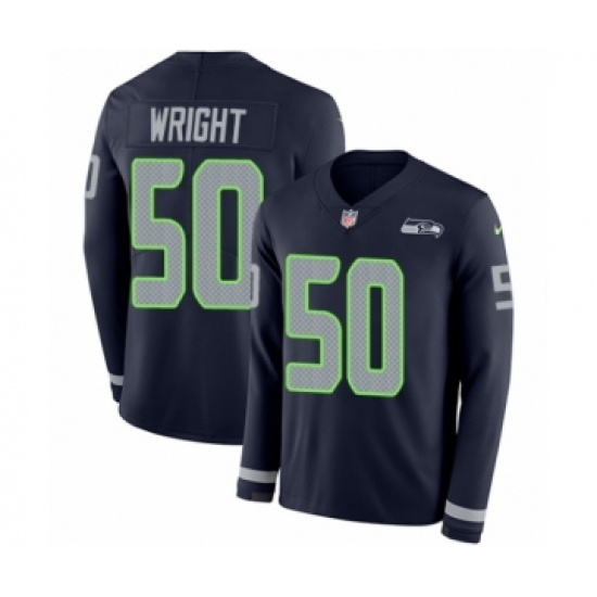 Men's Nike Seattle Seahawks #50 K.J. Wright Limited Navy Blue Therma Long Sleeve NFL Jersey