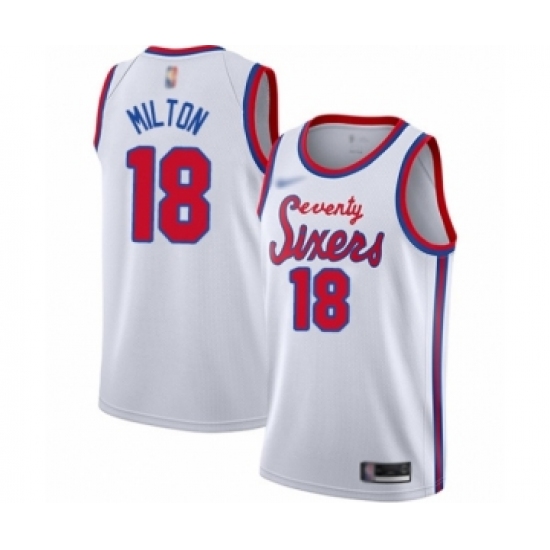 >Youth Philadelphia 76ers #18 Shake Milton Swingman White Hardwood Classics Basketball Jersey