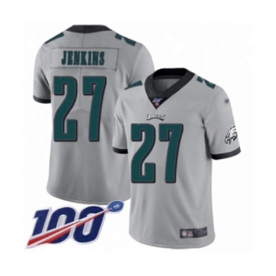 Men's Philadelphia Eagles #27 Malcolm Jenkins Limited Silver Inverted Legend 100th Season Football Jersey