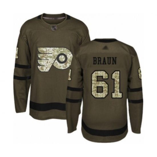 Men's Philadelphia Flyers #61 Justin Braun Authentic Green Salute to Service Hockey Jersey