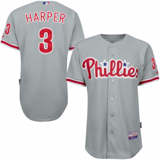 >Youth Philadelphia Phillies #3 Bryce Harper Grey Cool Base Stitched MLB Jersey