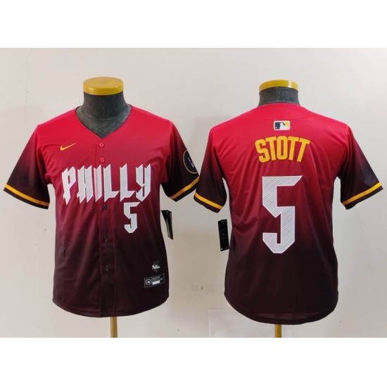 >Youth Philadelphia Phillies #5 Bryson Stott Number Red 2024 City Connect Limited Jersey