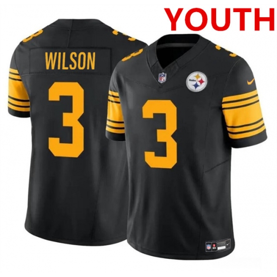 >Youth Pittsburgh Steelers #3 Russell Wilson Black 2023 F.U.S.E. Color Rush Limited Football Stitched Jersey