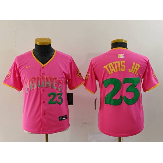 >Youth San Diego Padres #23 Fernando Tatis Jr Pink Player Number Fashion Baseball Jersey