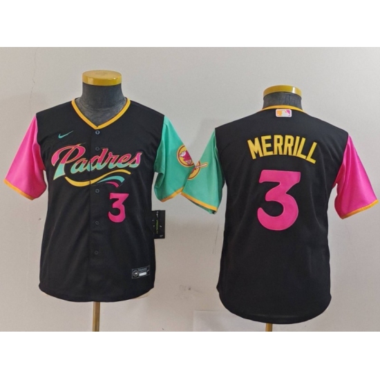 Youth San Diego Padres #3 Jackson Merrill Black Player Number Fashion Baseball Jersey
