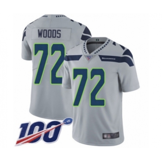 Men's Seattle Seahawks #72 Al Woods Grey Alternate Vapor Untouchable Limited Player 100th Season Football Jersey