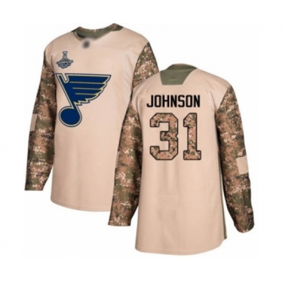 >Youth St. Louis Blues #31 Chad Johnson Authentic Camo Veterans Day Practice 2019 Stanley Cup Champions Hockey Jersey