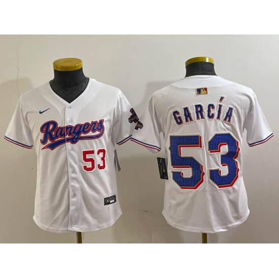 Youth Texas Rangers #53 Adolis Garcia Number White 2024 Gold Collection Limited Cool Base Jersey