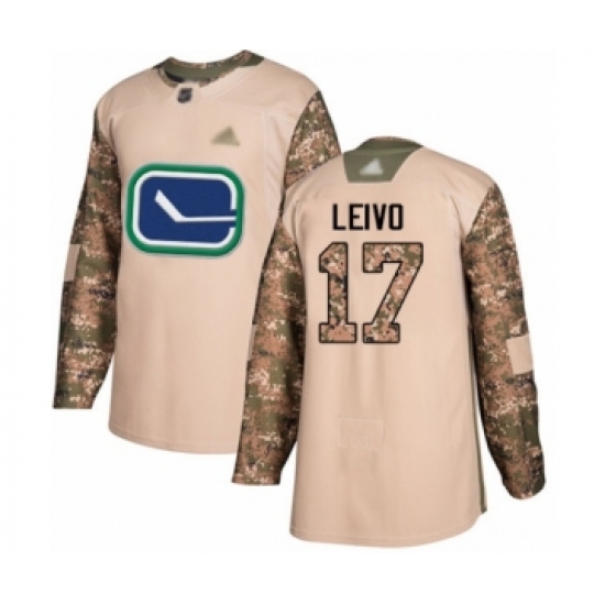 >Youth Vancouver Canucks #17 Josh Leivo Authentic Camo Veterans Day Practice Hockey Jersey