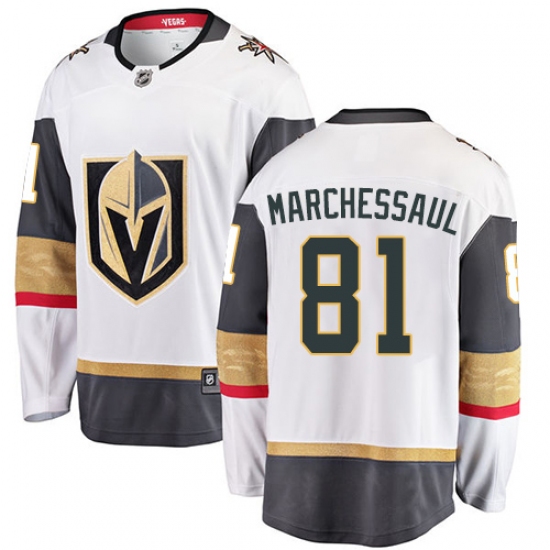Home>NHL>Vegas Golden Knights>Jonathan Marchessault>Youth Vegas Golden Knights #81 Jonathan Marchessault Authentic White Away Fanatics Branded Breakaway NHL Jersey