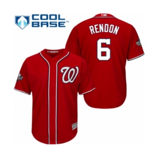 >Youth Washington Nationals #6 Anthony Rendon Authentic Red Alternate 1 Cool Base 2019 World Series Bound Baseball Jersey