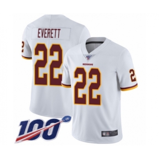 >Youth Washington Redskins #22 Deshazor Everett White Vapor Untouchable Limited Player 100th Season Football Jersey