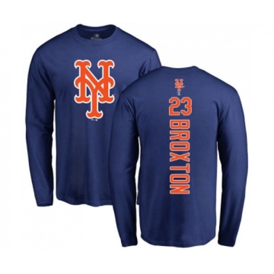 Baseball New York Mets #23 Keon Broxton Royal Blue Backer Long Sleeve T-Shirt