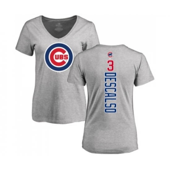 >Baseball Women's Chicago Cubs #3 Daniel Descalso Ash Backer T-Shirt