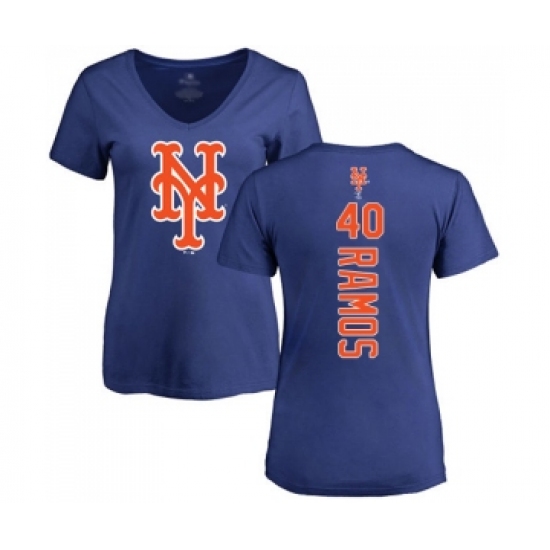 >Baseball Women's New York Mets #40 Wilson Ramos Royal Blue Backer T-Shirt