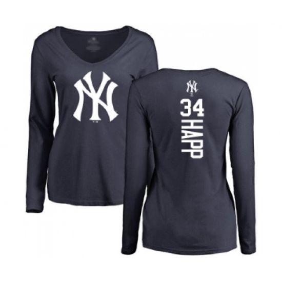 Baseball Women's New York Yankees #34 J.A. Happ Navy Blue Backer Long Sleeve T-Shirt