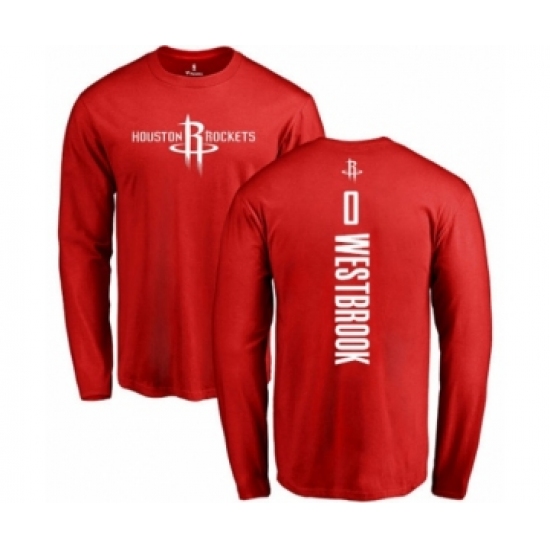 >Basketball Houston Rockets #0 Russell Westbrook Red Backer Long Sleeve T-Shirt