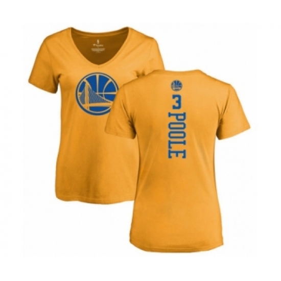 >Basketball Women's Golden State Warriors #3 Jordan Poole Gold One Color Backer Slim-Fit V-Neck T-Shirt