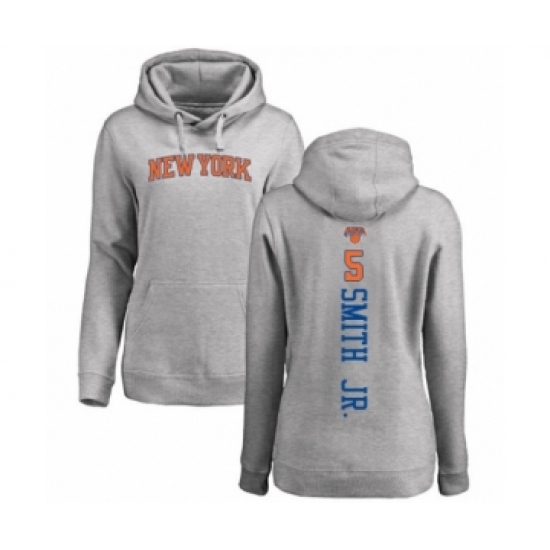 >Basketball Women's New York Knicks #5 Dennis Smith Jr. Ash Backer Pullover Hoodie