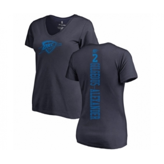 >Basketball Women's Oklahoma City Thunder #2 Shai Gilgeous-Alexander Navy Blue One Color Backer Slim-Fit V-Neck T-Shirt