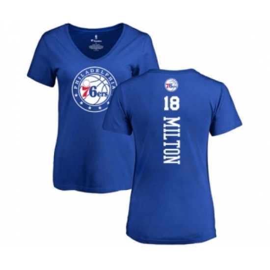 >Basketball Women's Philadelphia 76ers #18 Shake Milton Royal Blue Backer T-Shirt