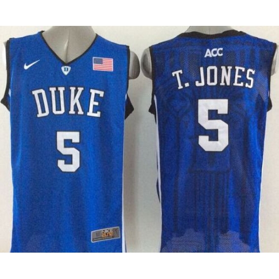 >Blue Devils #5 Tyus Jones Royal Blue Basketball New Stitched NCAA Jersey