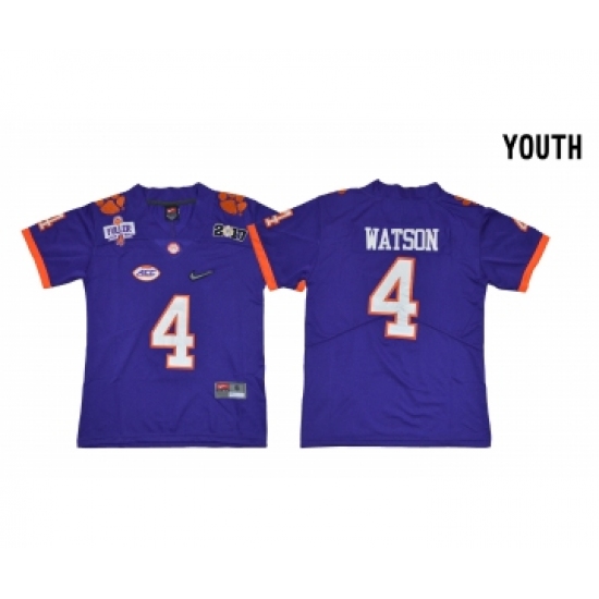 Clemson Tigers 4 Deshaun Watson Purple Youth Diamond Logo 1975-1978 Fuller College Jersey