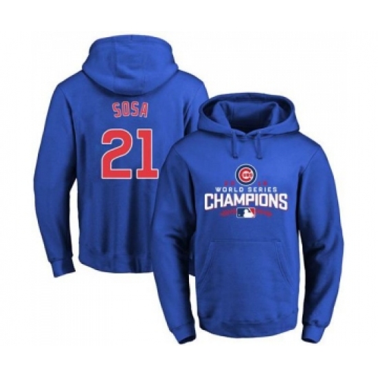 Cubs #21 Sammy Sosa Blue 2016 World Series Champions Pullover MLB Hoodie