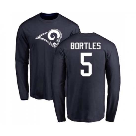 >Football Los Angeles Rams #5 Blake Bortles Navy Blue Name & Number Logo Long Sleeve T-Shirt