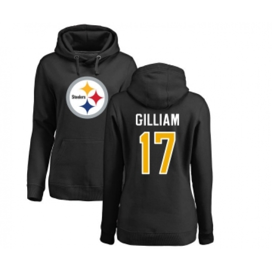 >Football Women's Pittsburgh Steelers #17 Joe Gilliam Black Name & Number Logo Pullover Hoodie