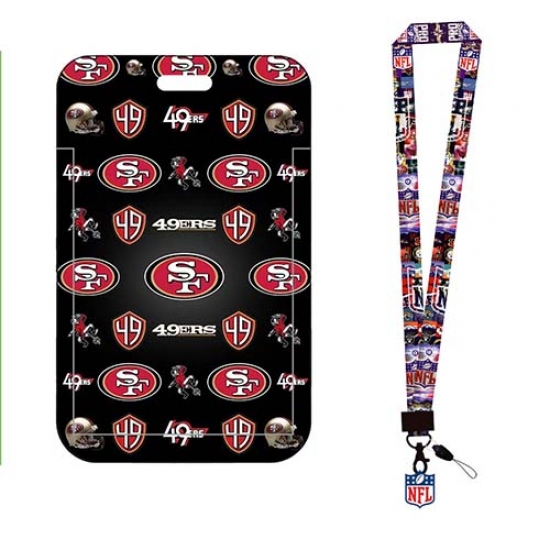 Francisco 49ers ID Stickers Badge Holder with Lanyard, Hard Plastic Key Card Work Badge Sleeve for Office, School, Factory, ID Credit Cards,2
