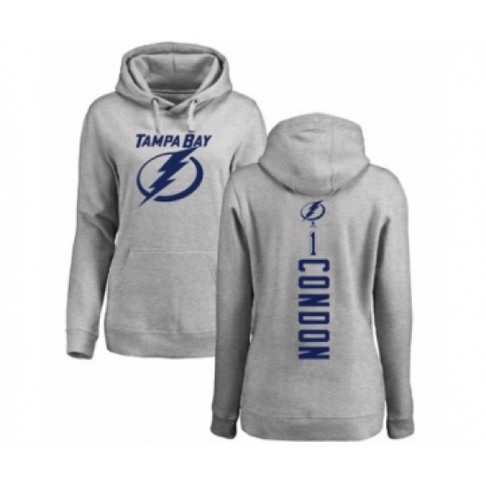 >Hockey Women's Tampa Bay Lightning #1 Mike Condon Ash Backer Pullover Hoodie