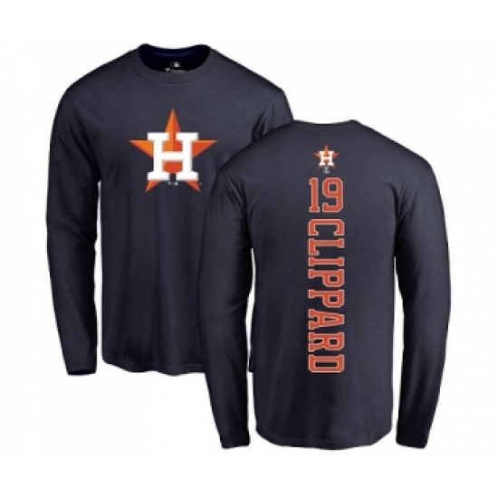 >MLB Nike Houston Astros #19 Tyler Clippard Navy Blue Backer Long Sleeve T-Shirt