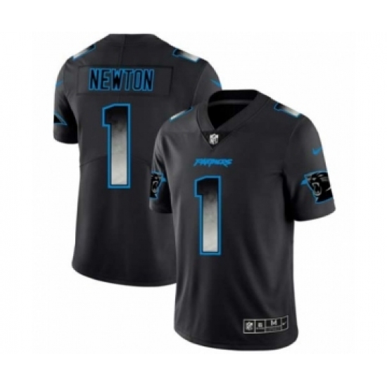 Men Carolina Panthers #1 Cam Newton Black Smoke Fashion Limited Jersey