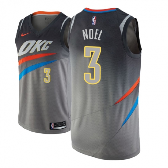 >Men NBA 2018-19 Oklahoma City Thunder #3 Nerlens Noel City Edition Gray Jersey