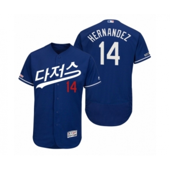 Men's 2019 Asian Heritage Month Los Angeles Dodgers #14 Enrique Hernandez Royal Korean Flex Base Jersey